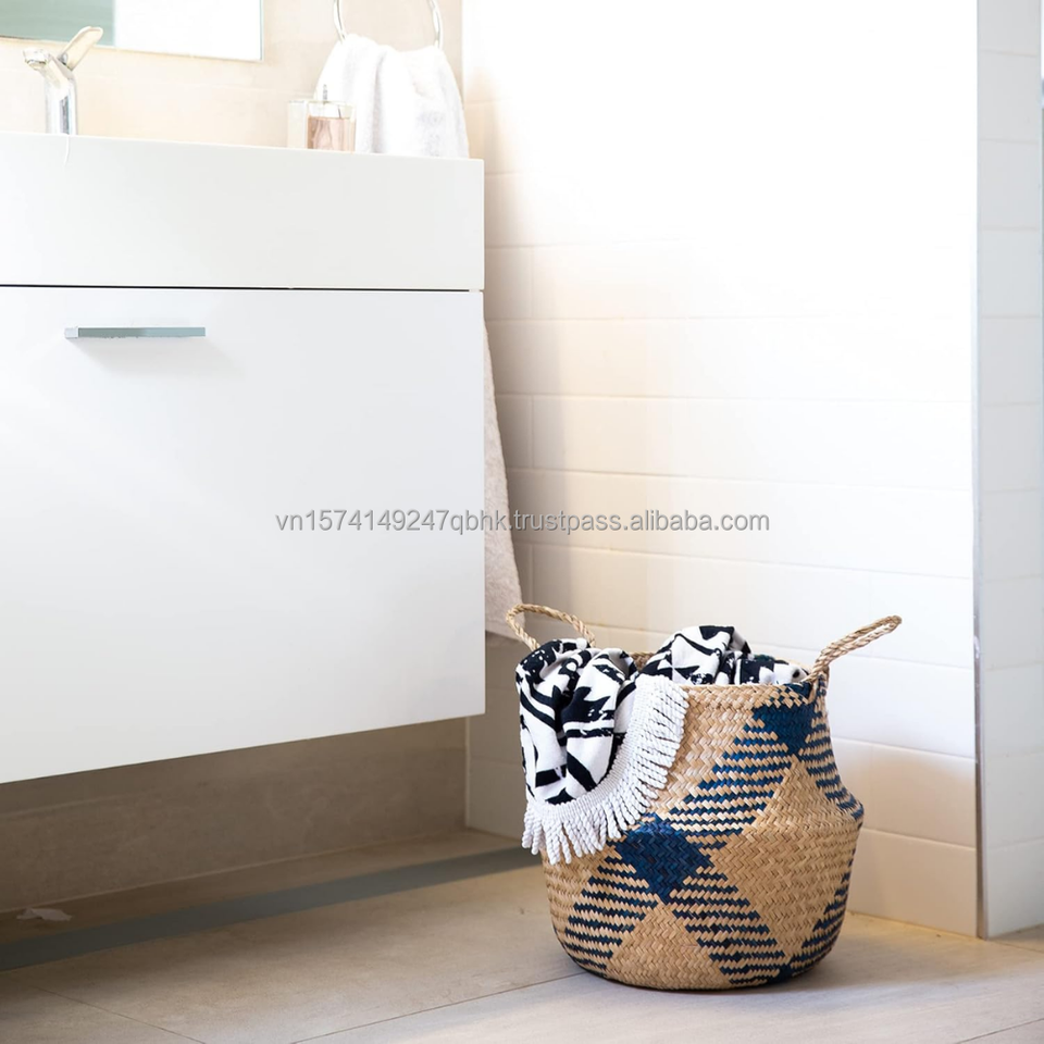 Boho Style Natural Wicker Belly Basket Handmade Foldable Organizer For Nursery Laundry With Handles Multipurpose Eco Storage Bin