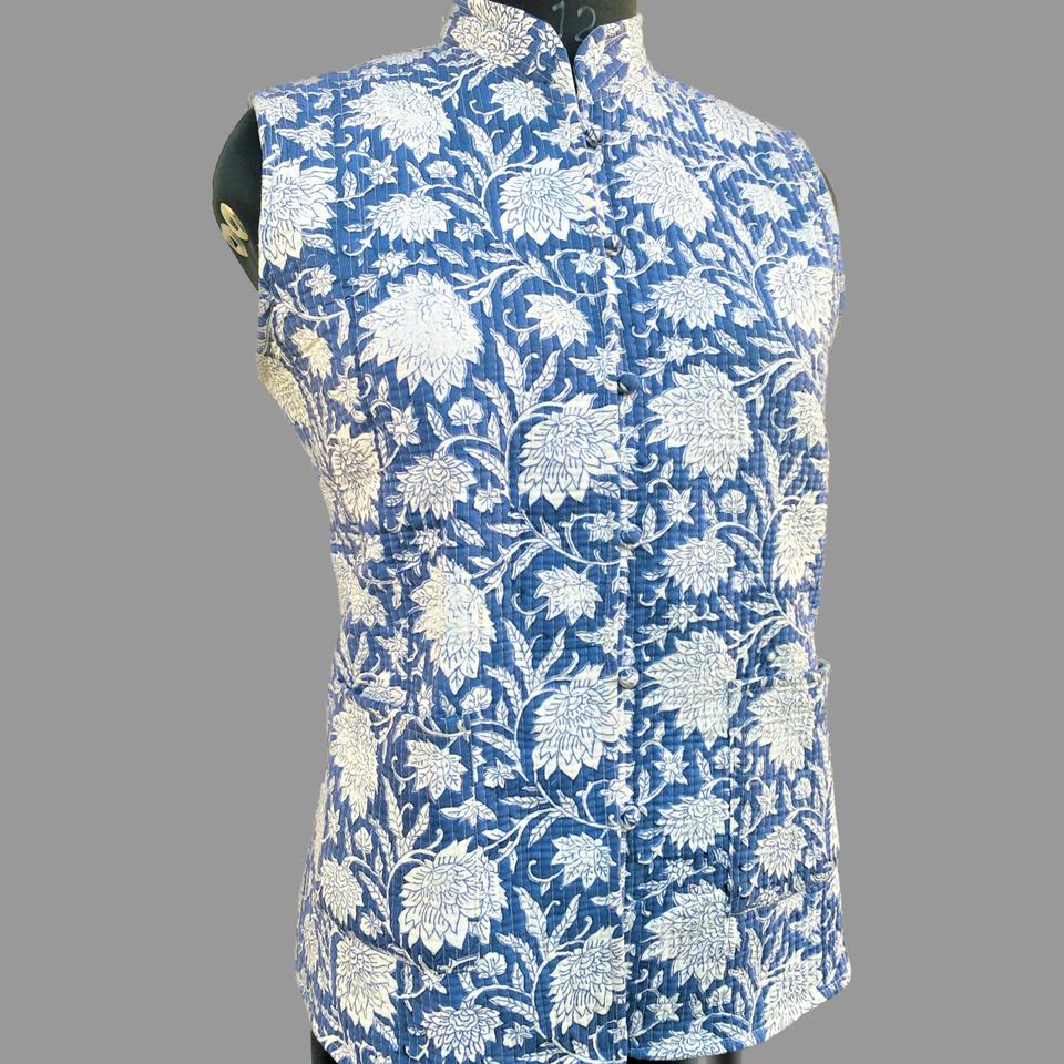 Boho Style Sleeveless Vest with Quilted Design Short Jacket, Women Printed Jacket Women's Cotton Block Print Floral Jacket