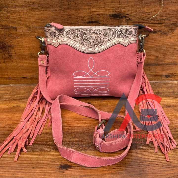 Product name:Hand Tooled Suede Leather Fringe Purse