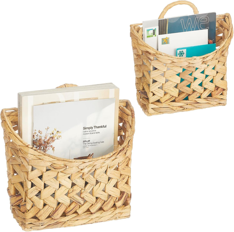 Boho-Style Water Hyacinth Hanging Organizer Handmade Woven Basket for Plants, Toys, or Small Items Storage & Decoration