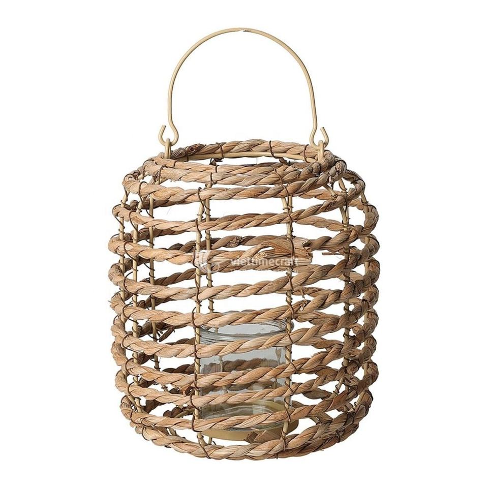 Best Seller Boho Style Water Hyacinth & Metal Candle Holder Handmade Mini Lantern Wholesale From Vietnam