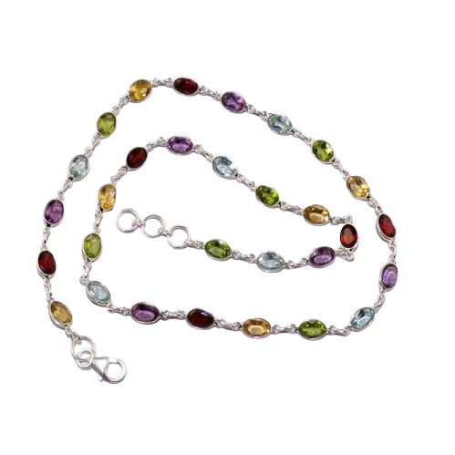 Boho Style Wholesale Mulit Gemstone Necklace 925 Sterling Silver Necklace Perfect Wedding Gift for love With 925 Stamp Jewelry