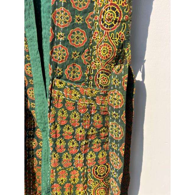 Women's Summer Boho-Style Cotton Kimono Handmade Indian Kantha Quilt Floral Block Print Long Jacket Quilted Front Open Design