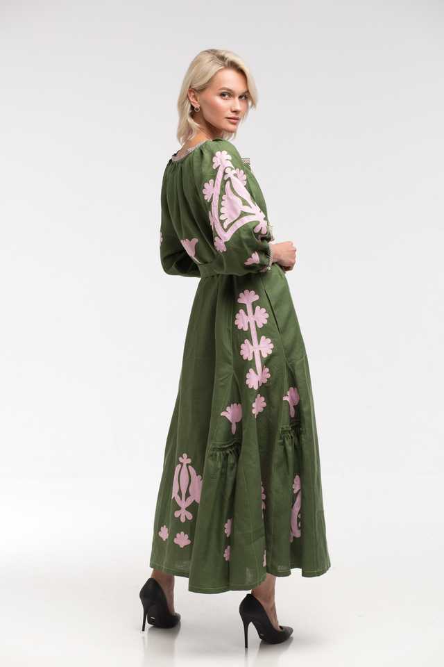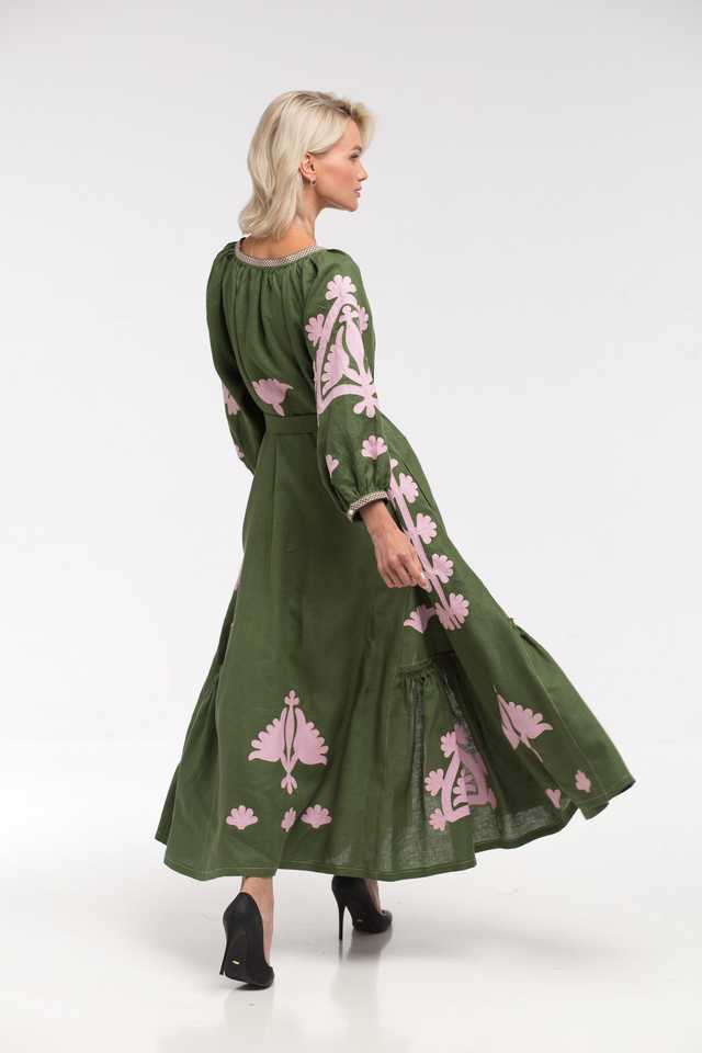 Boho Summer Linen Solid V-neck Embroidered Western Full Sleeve Natural Waist Belt Streetwear Modest Long Maxi Dress