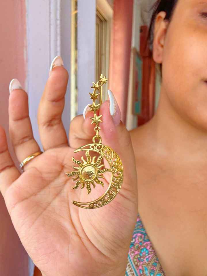 Boho Sun and Moon Celestial Gold Dangle Earrings | Star Climber Ear Cuff Astrology Jewelry