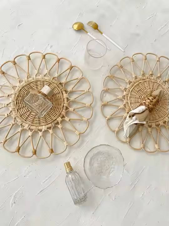 Boho Table Runner with Placemats Table Chargers Plates Wedding Party Event Rattan Placemat Round