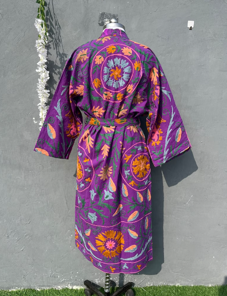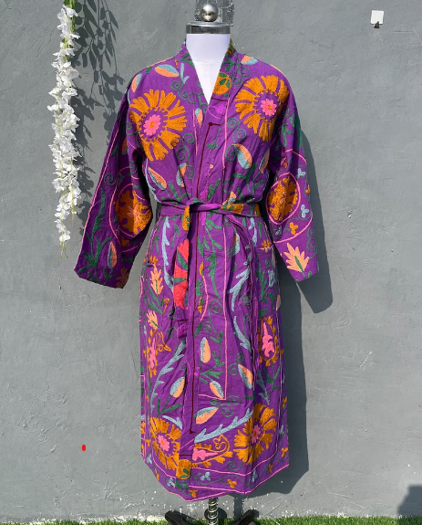 Boho Uzbek Kashmir Crewel Christmas Special Gift Classic Suzani Hand Embroidered Long Jacket Casual Button Autumn Embroidered