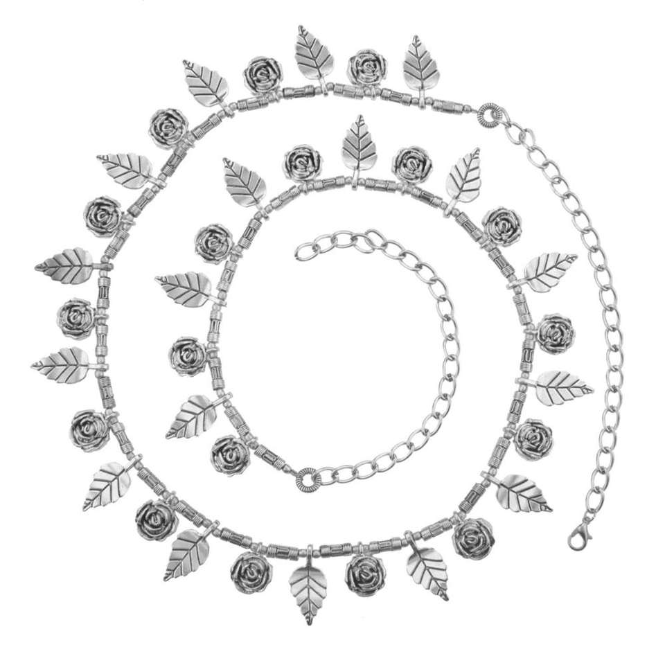 Boho Vintage Antique Ethnic Gypsy Tribal Indian Oxidized Silver Floral Charm Waist Belt Belly Chain Kamarbandh Body Jewelry for