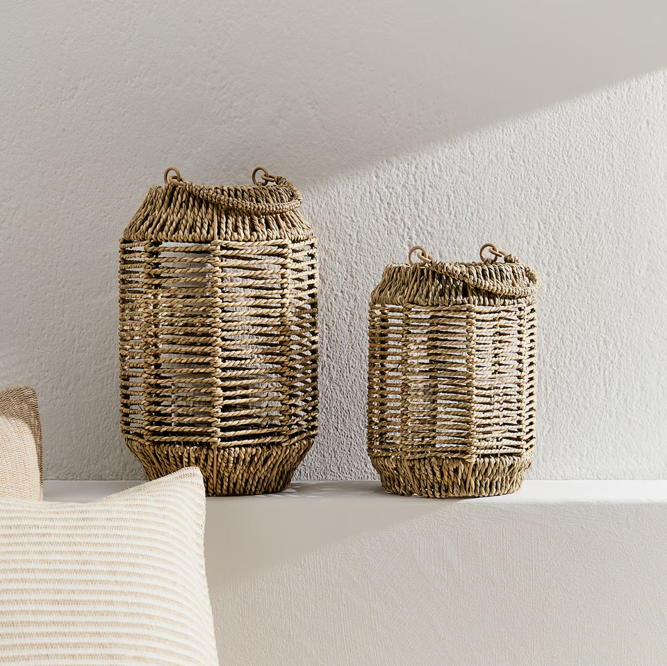 Boho Vintage Natural Woven Jute and Bamboo Candle Lantern Holders Inside and Outside Easter Home Decorative