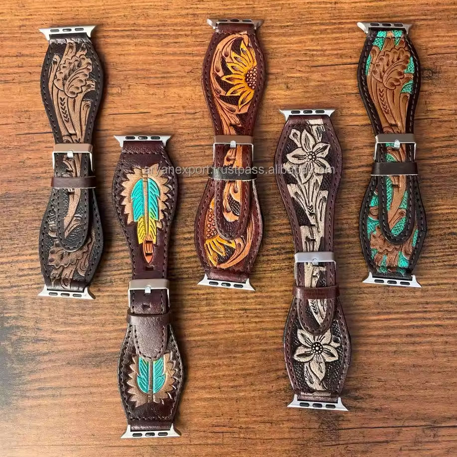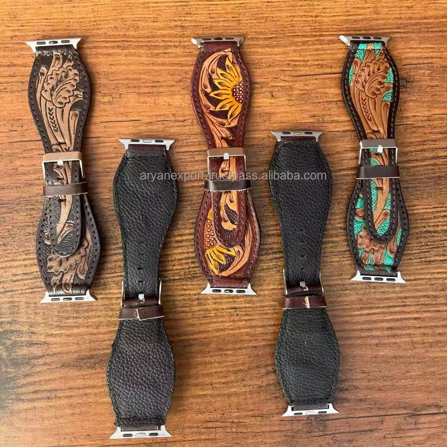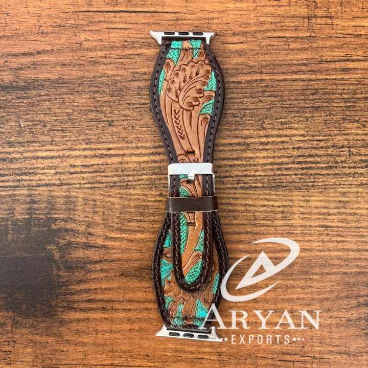 Type:Tooled Leather Turquoise Flare Watch Hand Band
