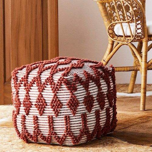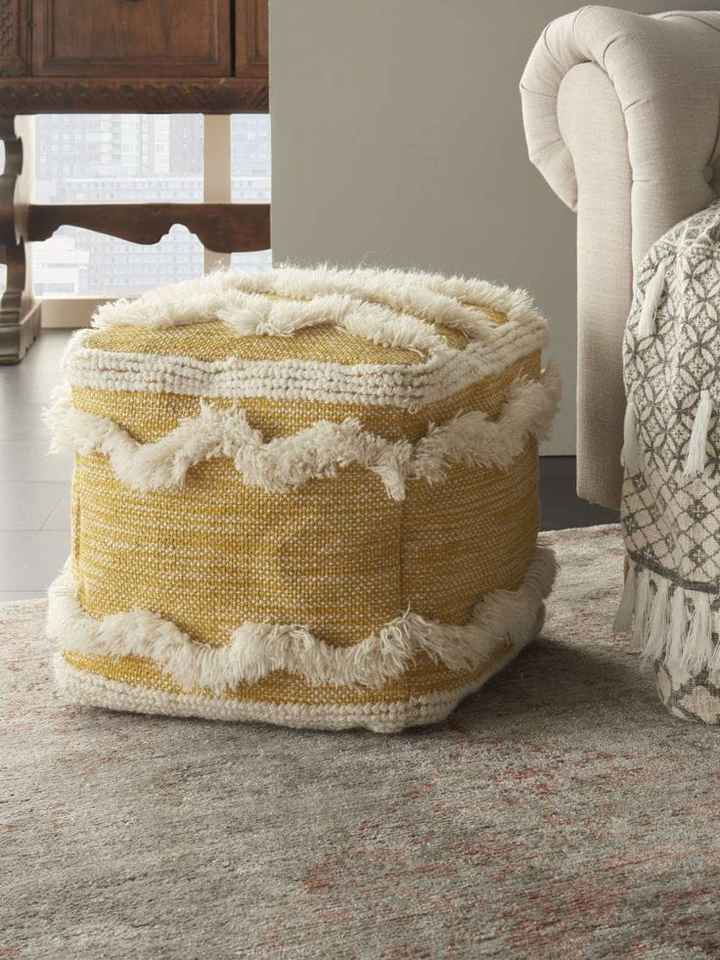 Boho Wool & Cotton Pouf | Handwoven Ottoman Stool for Cozy Decor Cushion Footrest Pouffe Seat for Living Room Decor By ITHL