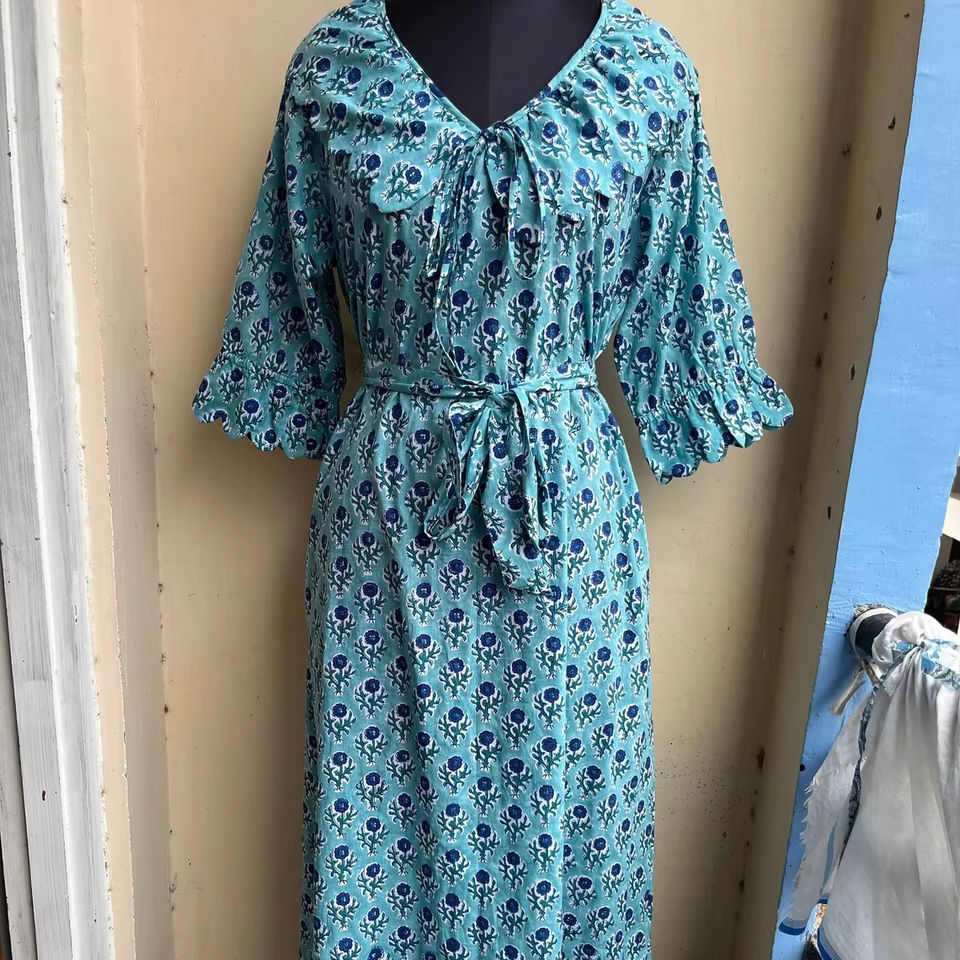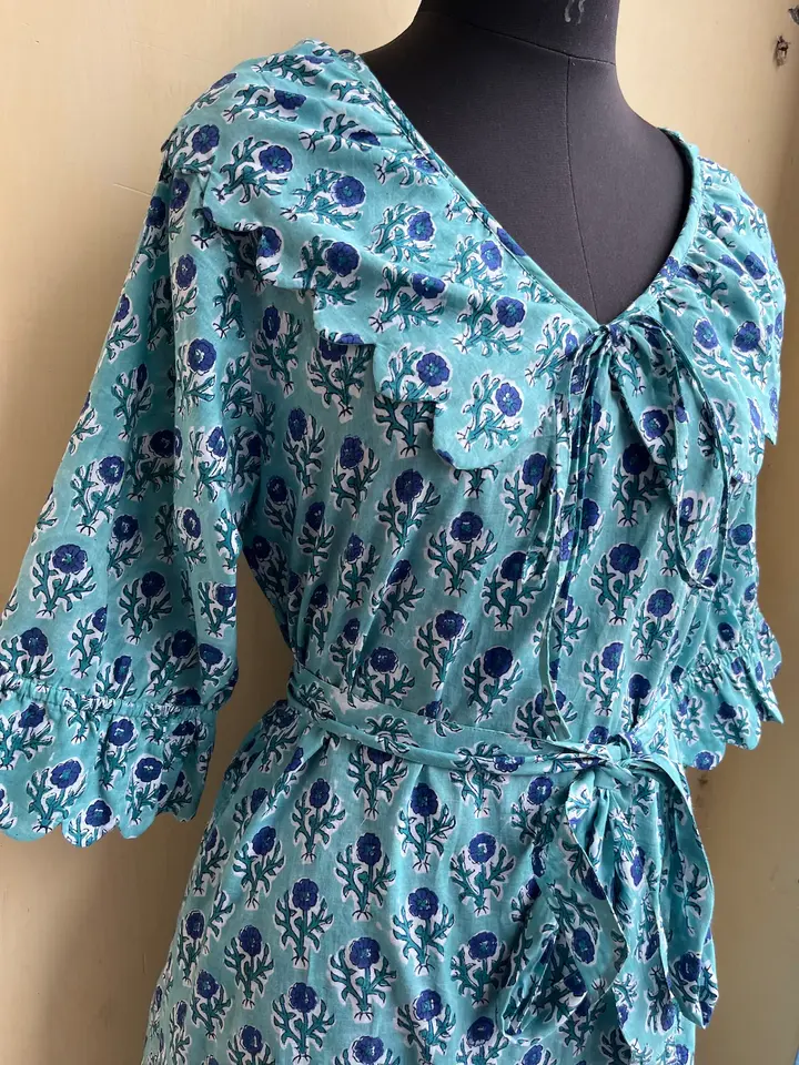 Boho dress short Block Print Indian Tunics Hand Dress Cotton Long Gown Indian Printed Dress collection
