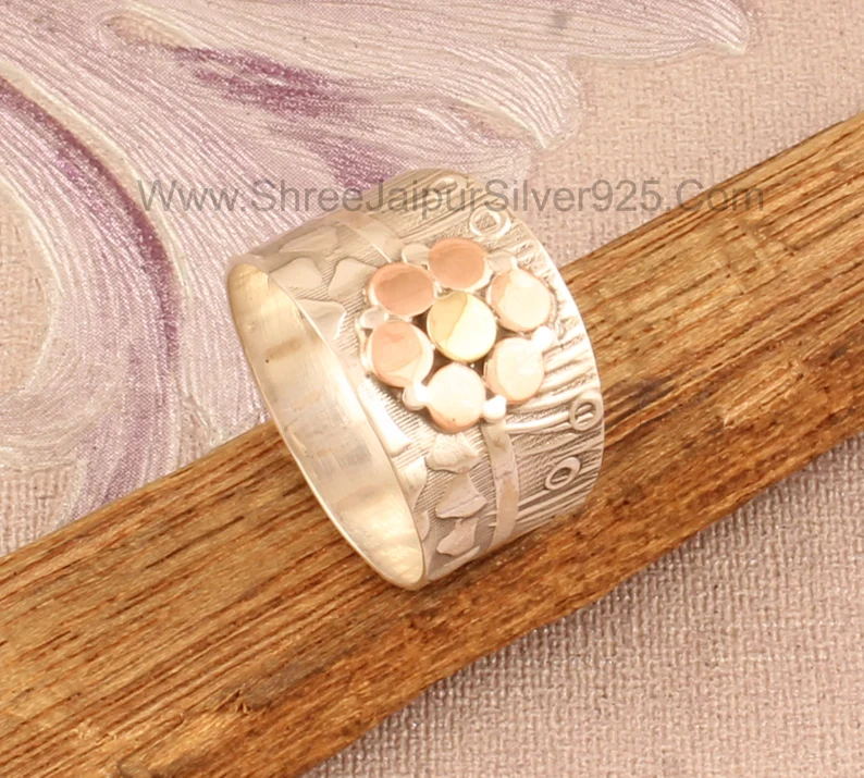 Boho hand Solid 925 Sterling Silver Spinner Ring For Women, Handmade Hammered Boho Meditation Ring For Her Silver Worry Ring For