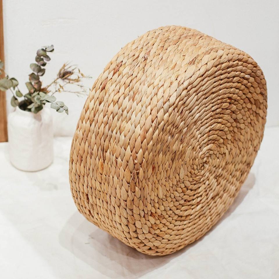 Boho water hyacinth floor pouf cushions indoor and outdoor seating cushion pillow stools home accessories