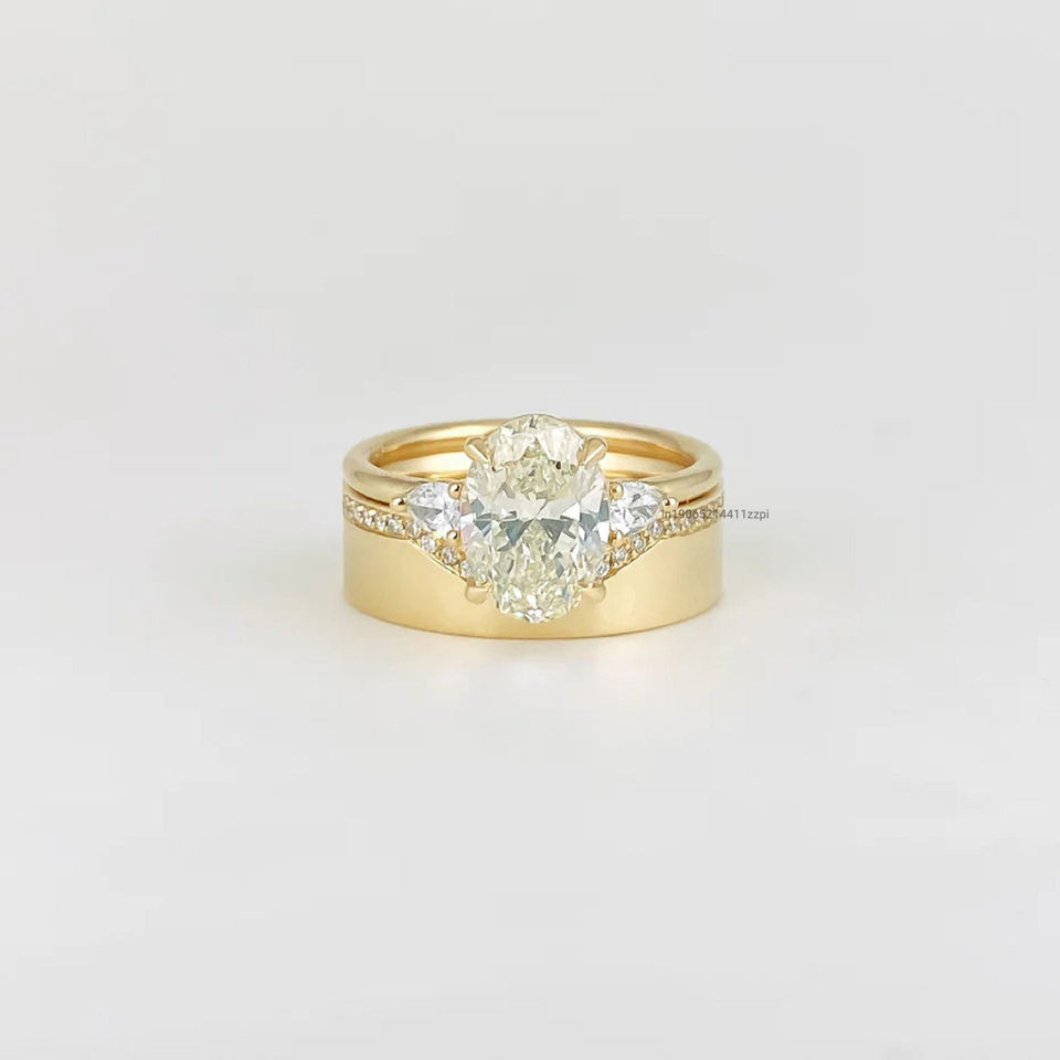 Bold 6 MM Wide V Shaped Flat Wedding Ring with 0.27 TC Round Cut Moissanite Accents in 14k Solid Yellow Gold Half Eternity Band