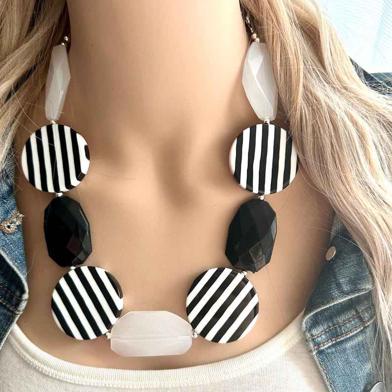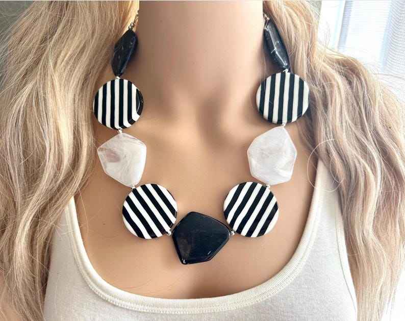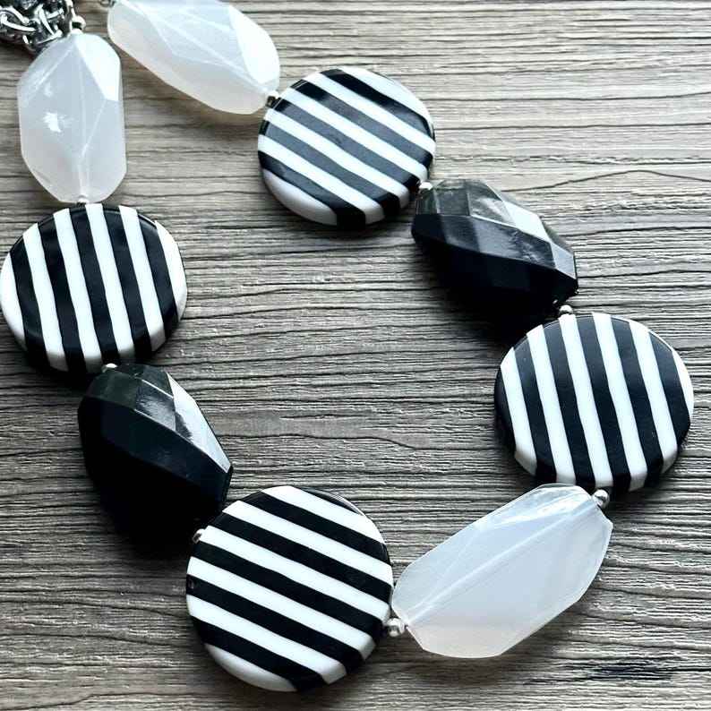 Bold Black White Resin Craft Beads Resin Necklace Striped Acrylic Chunky Statement Fashion Neckpiece for Women