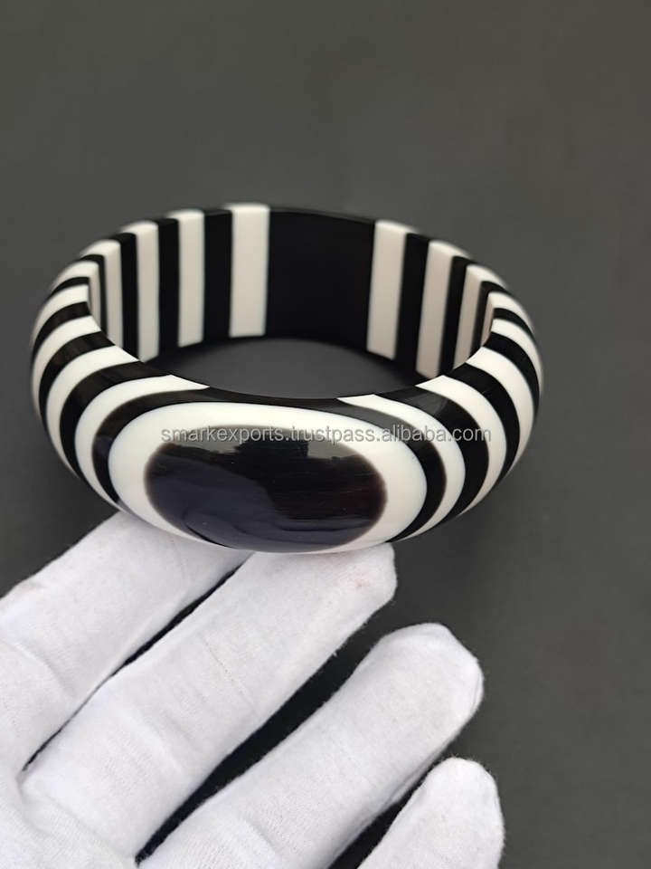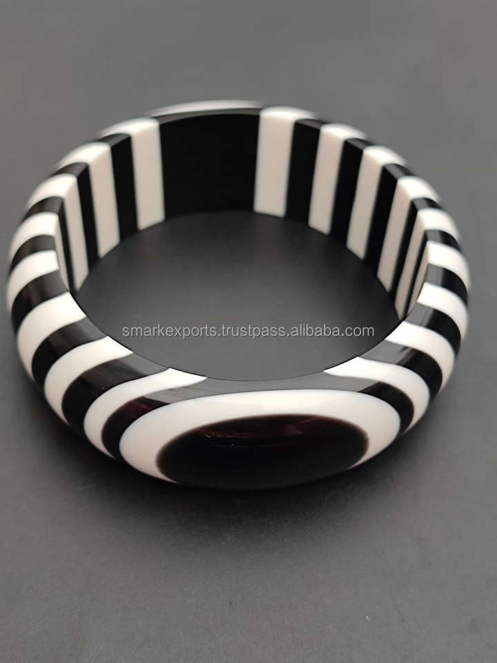 Bold Black and White Resin Bangle Acrylic Bracelet Chunky Fashion Wrist Cuff Handmade Jewelry Women Girls Striped Resin Bracelet