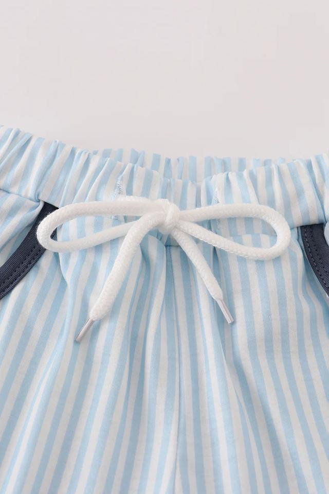 Bold Blue Stripe Pocket Shorts Set Casual and Cool Boys Clothing with Convenient Side Pockets