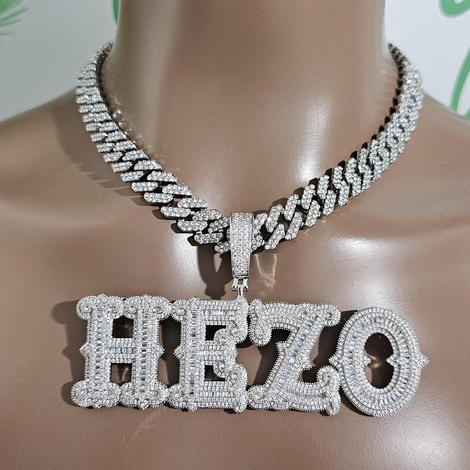 Big Baguette Letters Pendants:12MM Cuban Chain