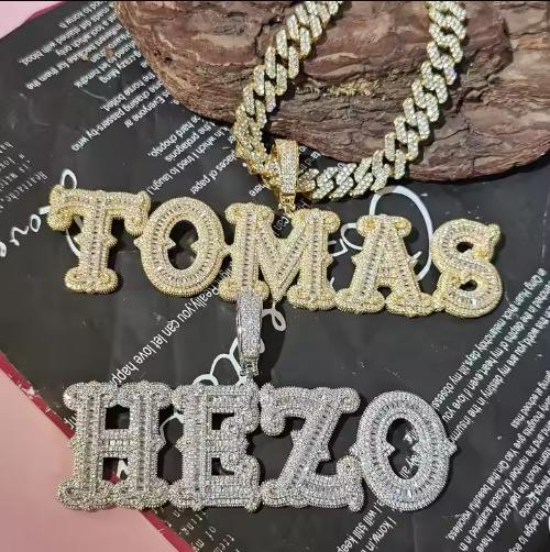 Big Baguette Letters Pendants:12MM Cuban Chain