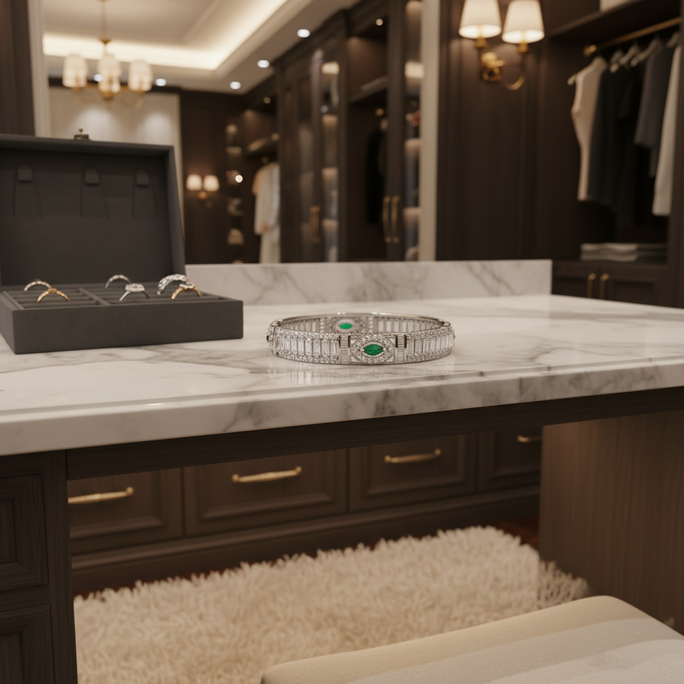 Bold Designer Statement Bangle for Women 925 Silver Colorful Crystal Accent Classic Style Jewelry for Special Occasions