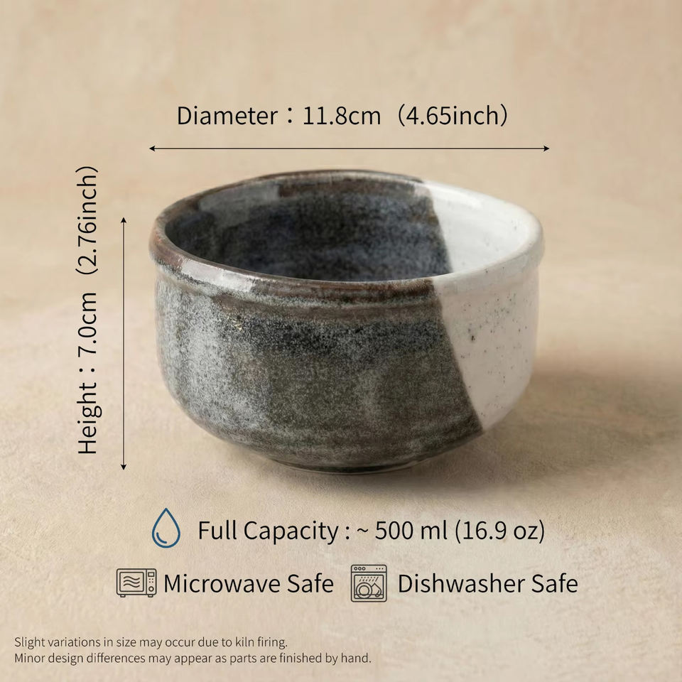 Bold Half-And-Half Design Deep Grey Soft White Wholesale Matcha Bowl Gift For Traditional Tea Ceremonies Modern Interior Decor
