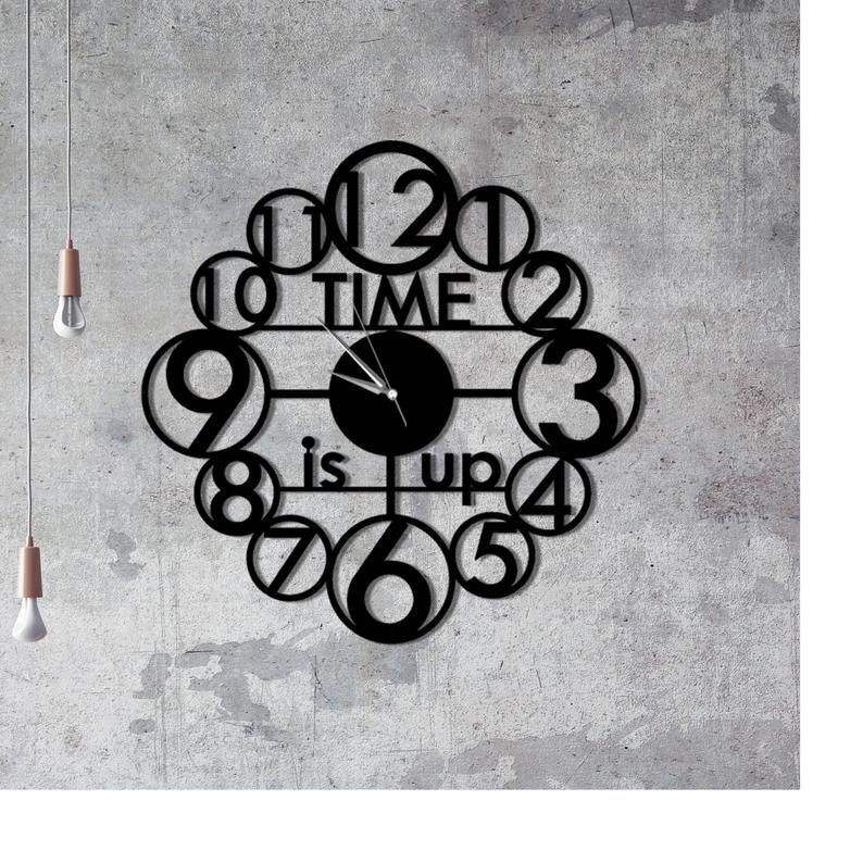 Bold Modern Black Metal Typography 'Time Is Up' Statement Wall Clock Decorative Design for Home and Office