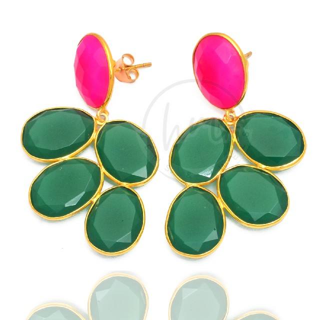 Stone Type:Pink Chalcedony Top Green Onyx Drop