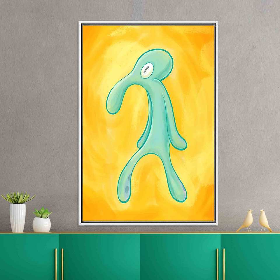 Bold Squidward Canvas Print: Modern Art for Unique Decor,WHITE FRAMED CANVAS