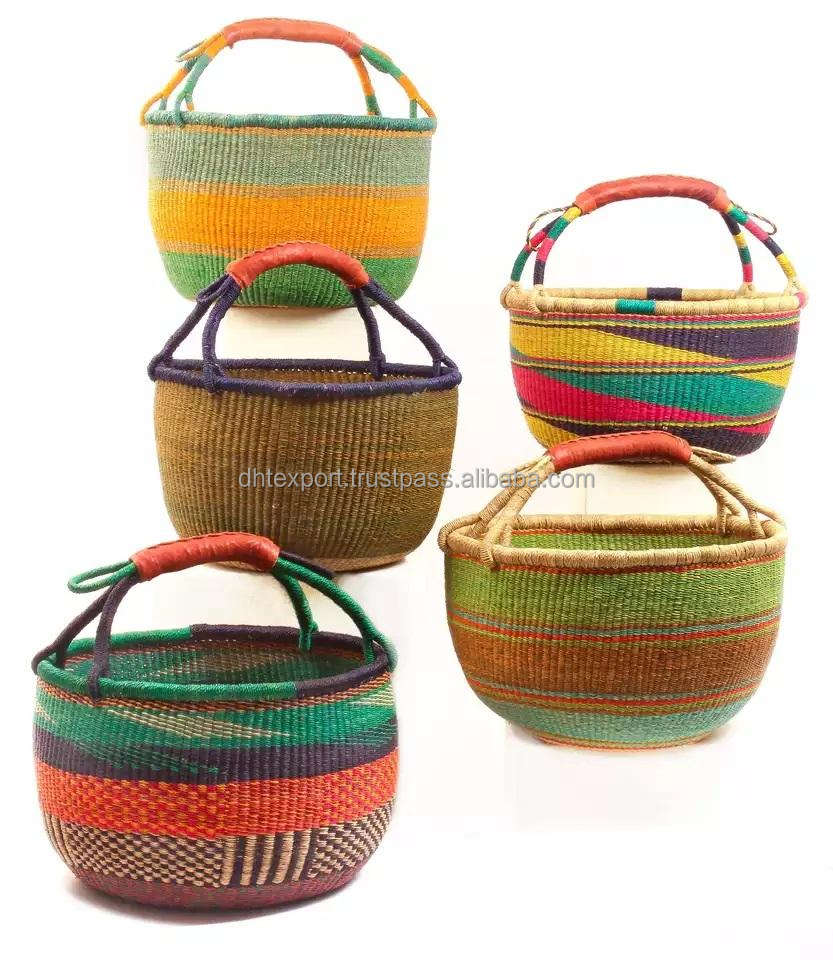 Bolga Basket Natural Seagrass Handwoven Durable Folding Multifunctional with Lid/Handles Export Quality Storage Basket