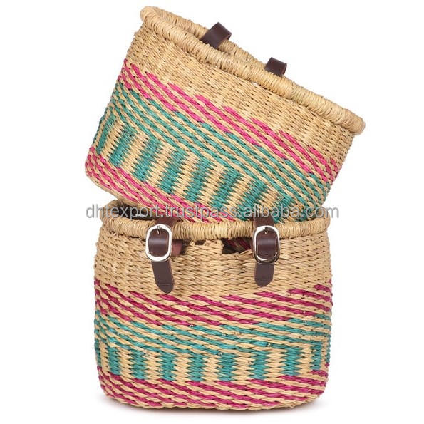 Bolga Seagrass Storage Baskets With Handles Low Price DHT Handicraft Manufacturer From Vietnam for Kitchen Use-Pot Bag Storage