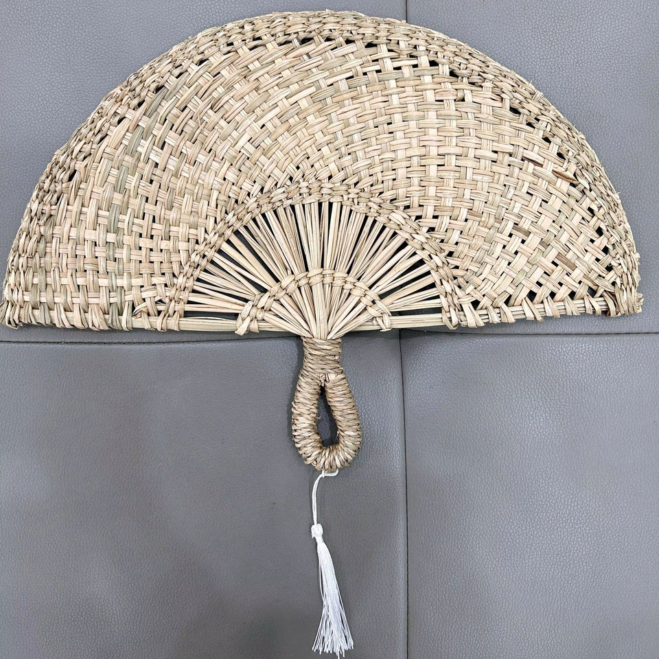 Bolga straw hand fan| palm leaf woven summer fan straw fans for Beach, picnic, and outdoor events Wedding or party decoration