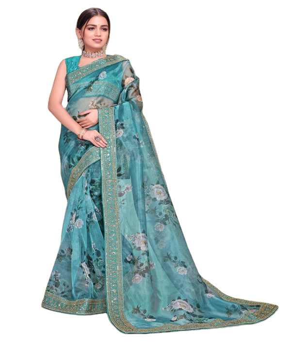 Bollywood Designer Ready to Wear Lyra Fabric Saree Work Flower Brooch Party Wear Digital Printing Colorful Saree with Indian Bl Apparelgarment