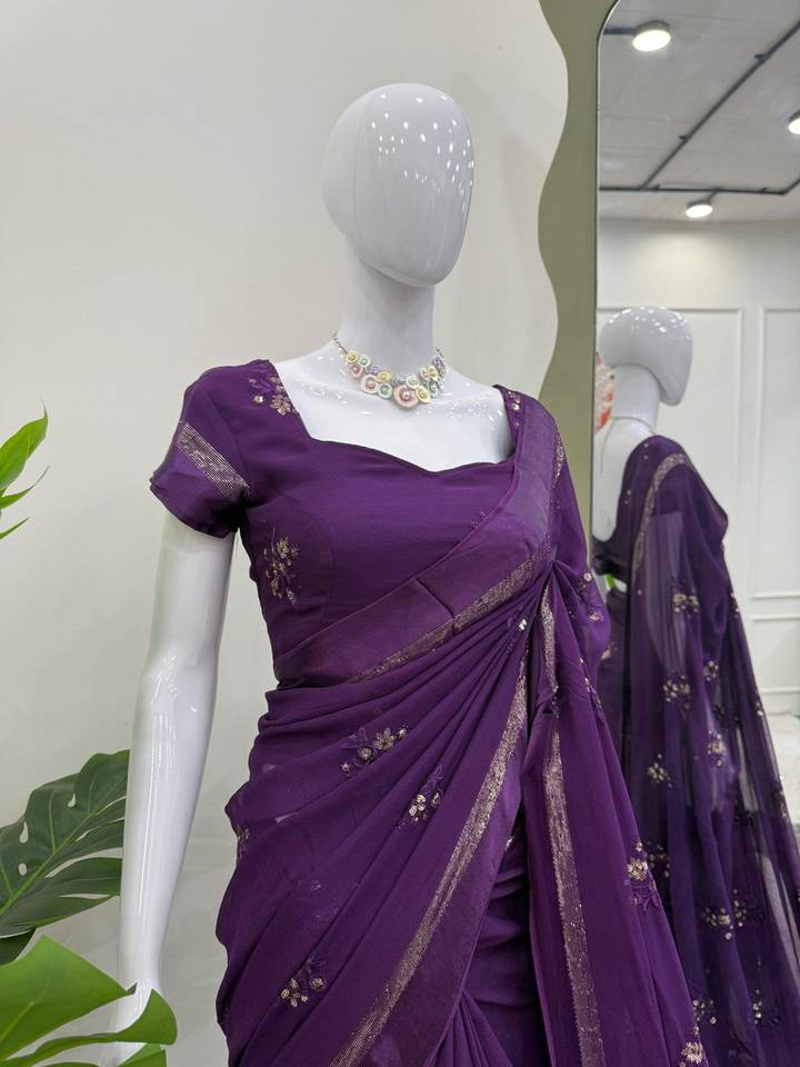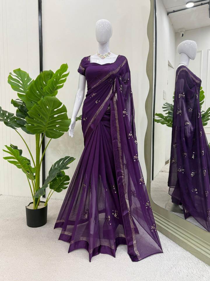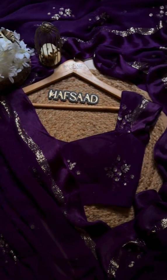 Bollywood-Style Indian Pakistani Viscose Saree with Thread Sequin Embroidery Designer Partywear Blouse Set Included
