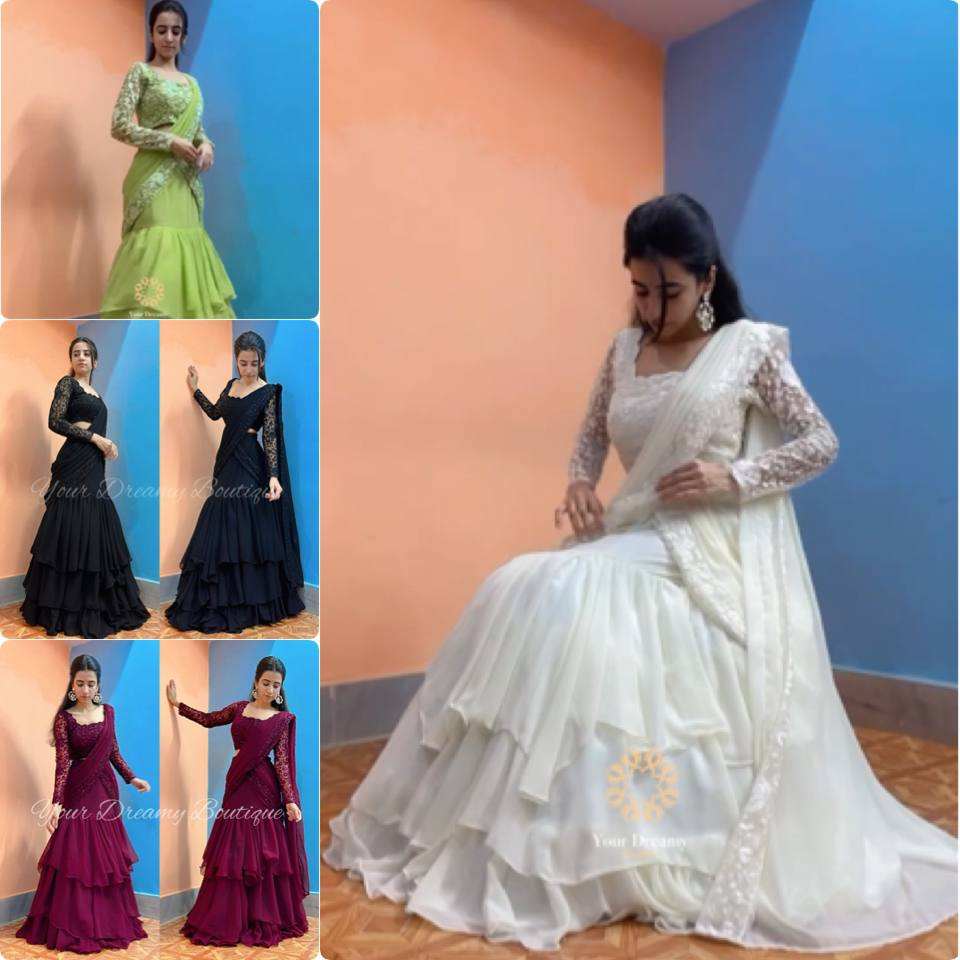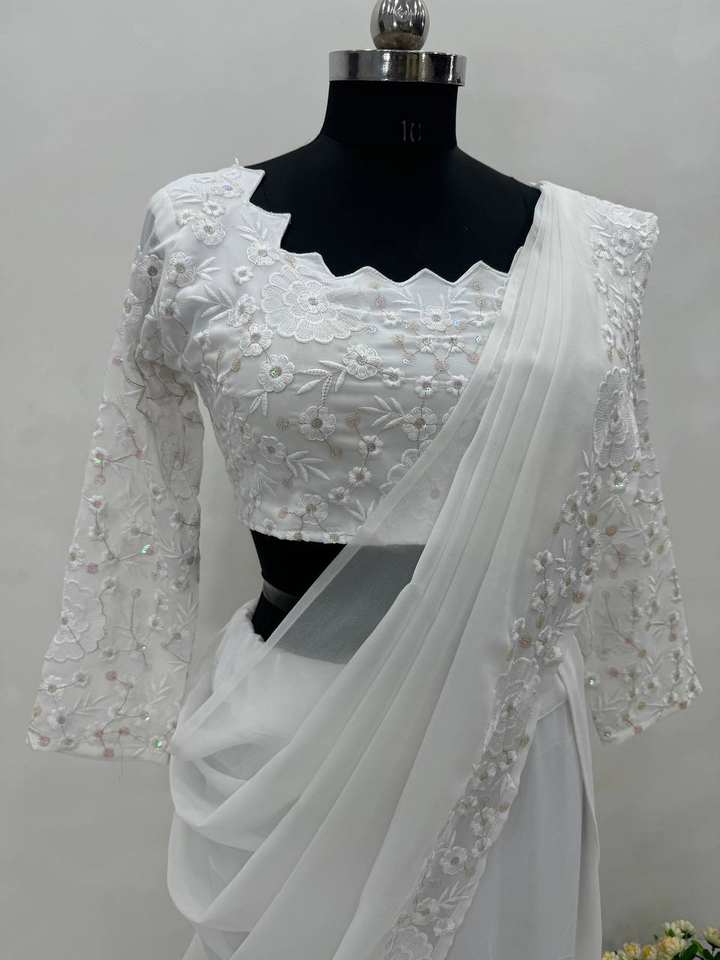 Bollywood Style white color lehenga saree choli in faux georgette with embroidery sequence work for Indian Pakistani ladies