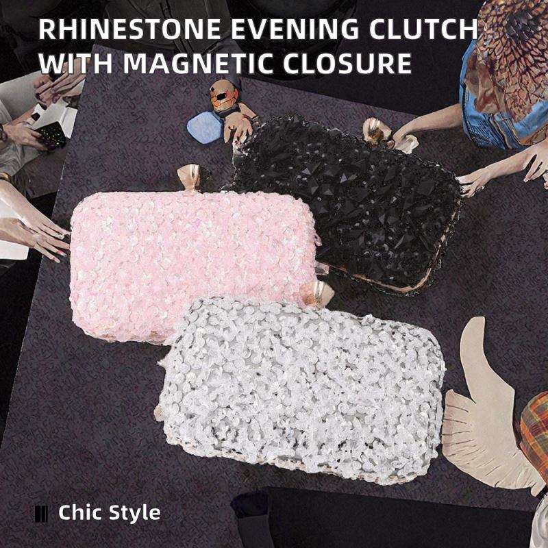 Bolsa feminina de luxo para festas e eventos com design exclusivo em PU texturizado com diamantes em formato de almofada