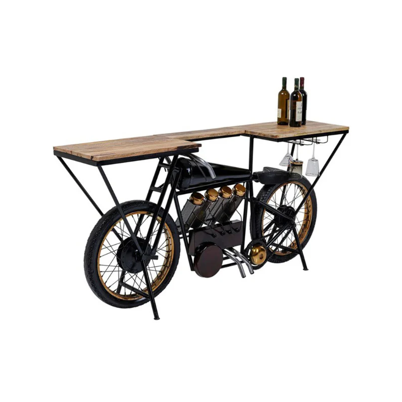 Bombay Style Bar Console Motorbike Indian Automobile Furniture Mango Wood Top Harley Davidson Original Bar Counter Motorcycle