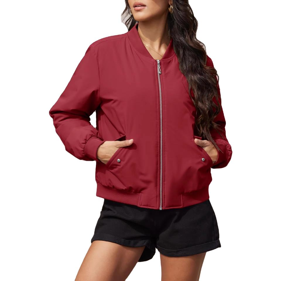 Bomber Jacket Solid Style Long Sleeve Front Pockets Style Breathable Jacket Woman Jacket Outdoor Waterproof Hunting Out Wear