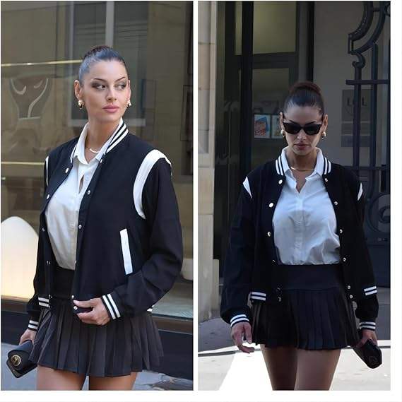 Product name:Bomber Jacket Women Varsity Casual Button Down Lightweight