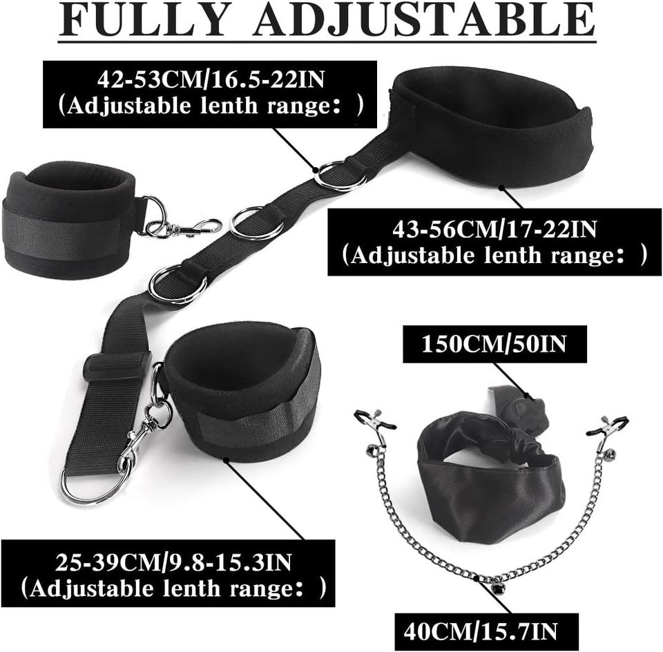 Bondage Restraints Set with Adjustable Handcuffs Collar Blindfold Nipple Clamps, Sex Bondage BDSM Kit for Men Women and Couples