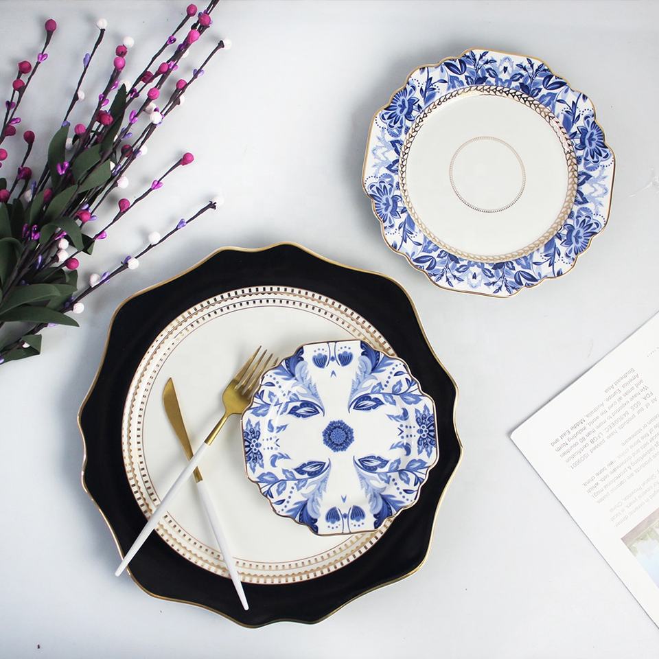 Bone China Dishes Ceramic Charger Plate Sets Blue and White Dinnerware Sets Porcelain Dinner Plate Set