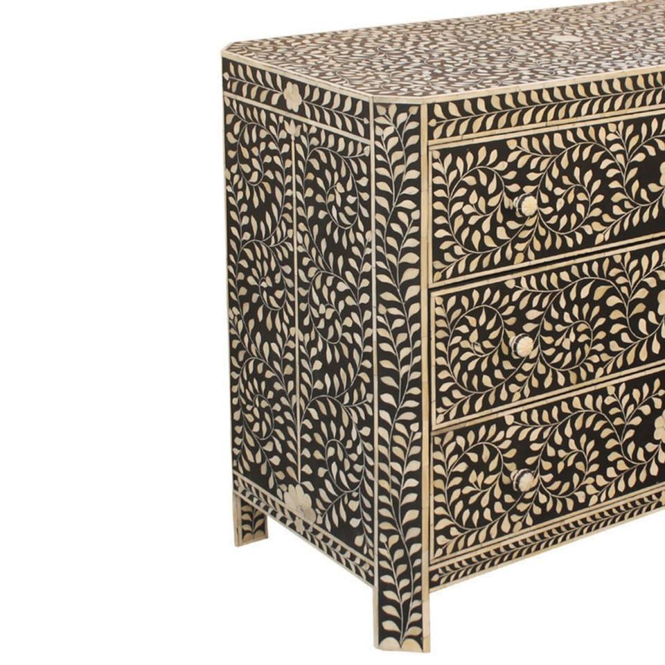 Bone Inlay Console Bone Inlay Table with 3 Drawers Storage Cabinets for Living Room Wood MdF Console Mother of Pearl Table