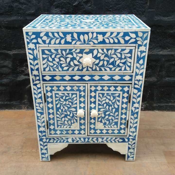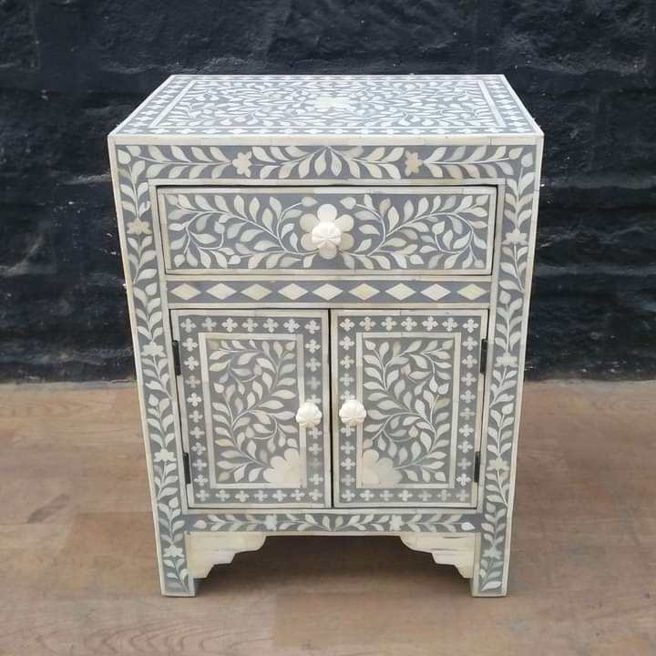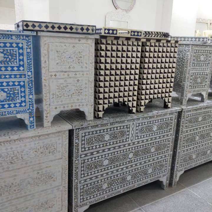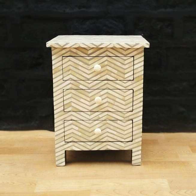 Bone Inlay Furniture Bone Inlay Large 3 Drawer Bedside Table Black Geometric Mother of Pearl Furniture