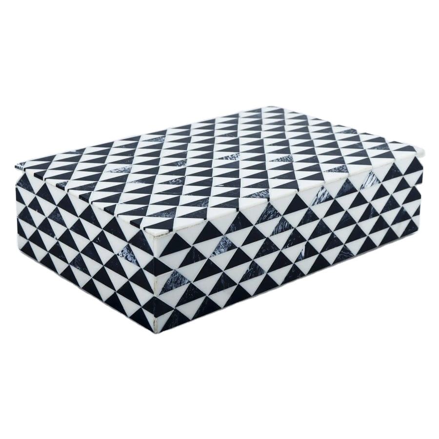 Noor Elegance Handmade Blue and White Bone Inlay Rectangle Jewelry Box Luxury Organizer for Home Office StorageRamadan Eid Gifts