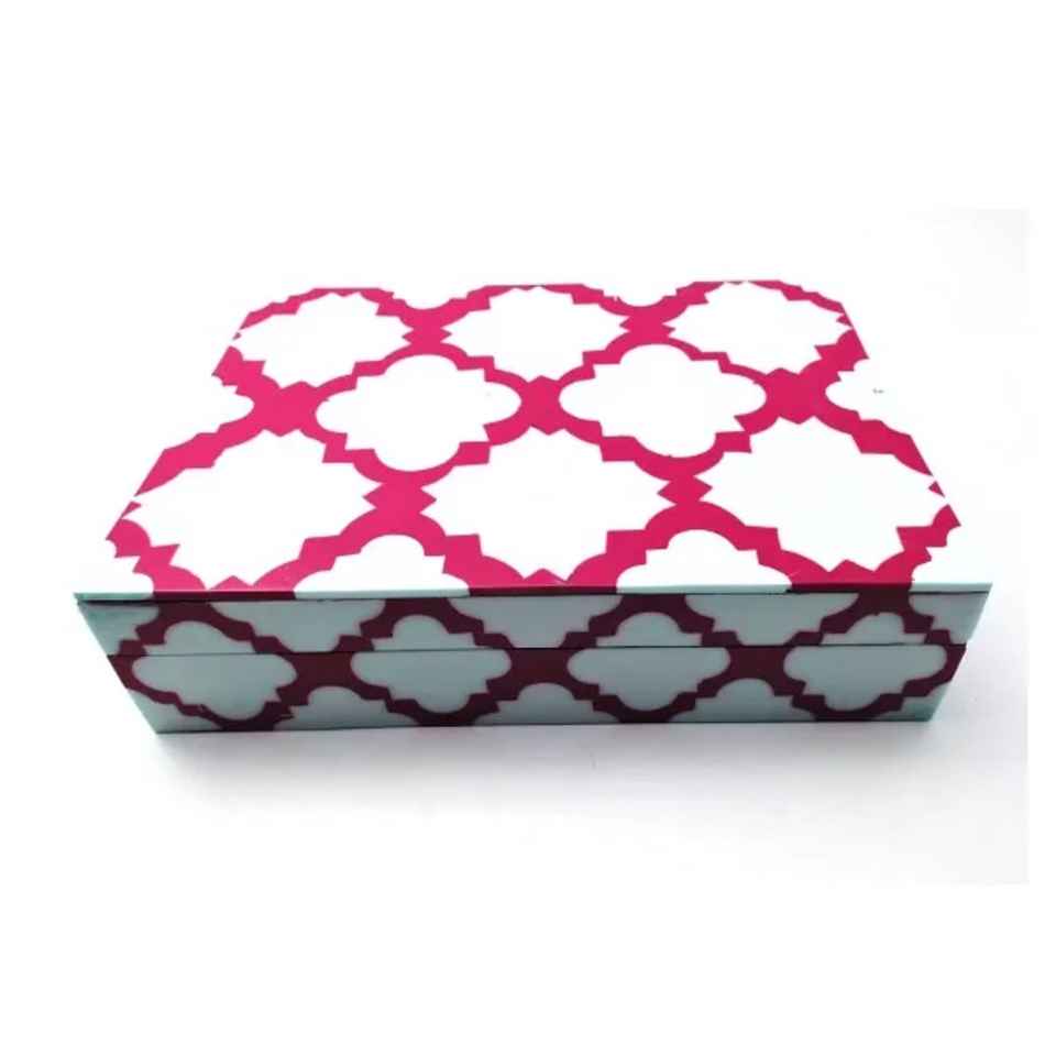 Bone Inlay Jewelry Box Geometric Diamond Pattern Storage Chest Handmade Rectangular Keepsake Box Luxury Trinket Organizer Modern