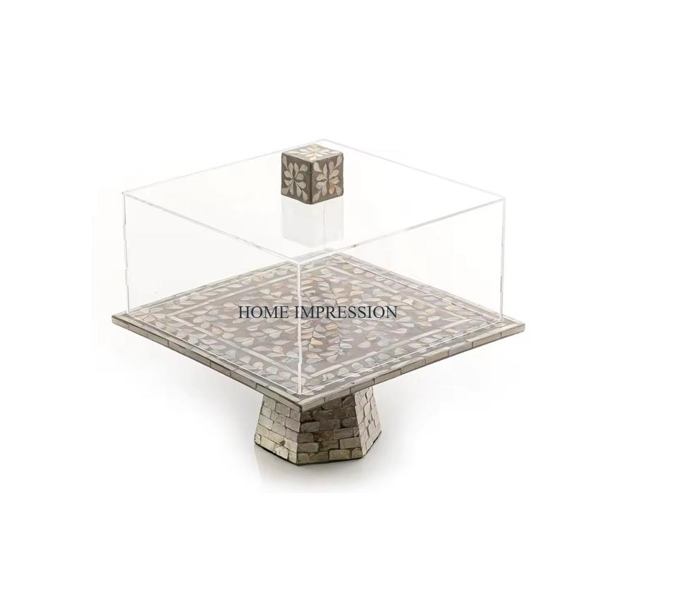 Bone Inlay Material Square Shape Cake Display Stand and Platters Top Selling Luxury Table Decoration Wooden Cake Display Stand
