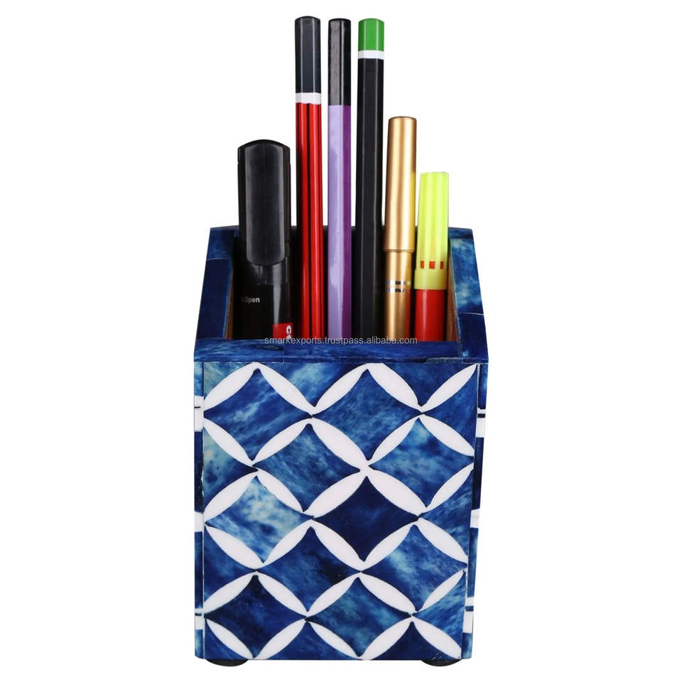 Bone Inlay Eco-Friendly Pen Holder Handmade Wooden Desk Organizer Elegant Pencil Stand Office Stationery Holder Makeup Tabletop