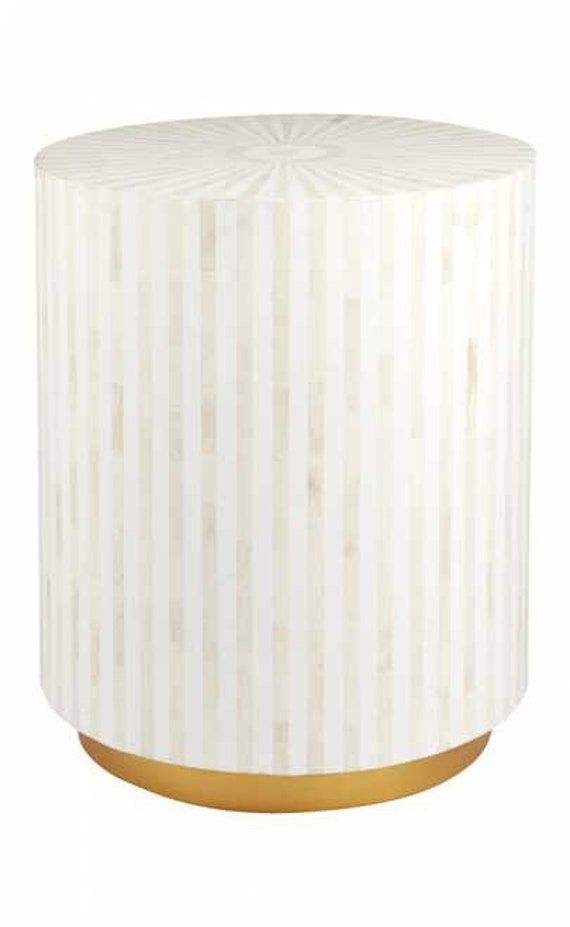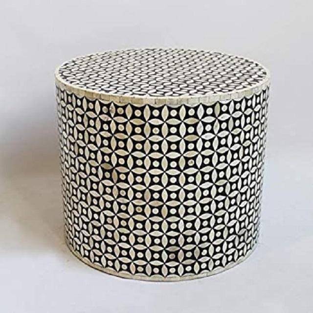 Bone Inlay Round Corner Table Bone Inlay Bar Stool With White Color Finishing and Round Shape With Black Resin for Bar