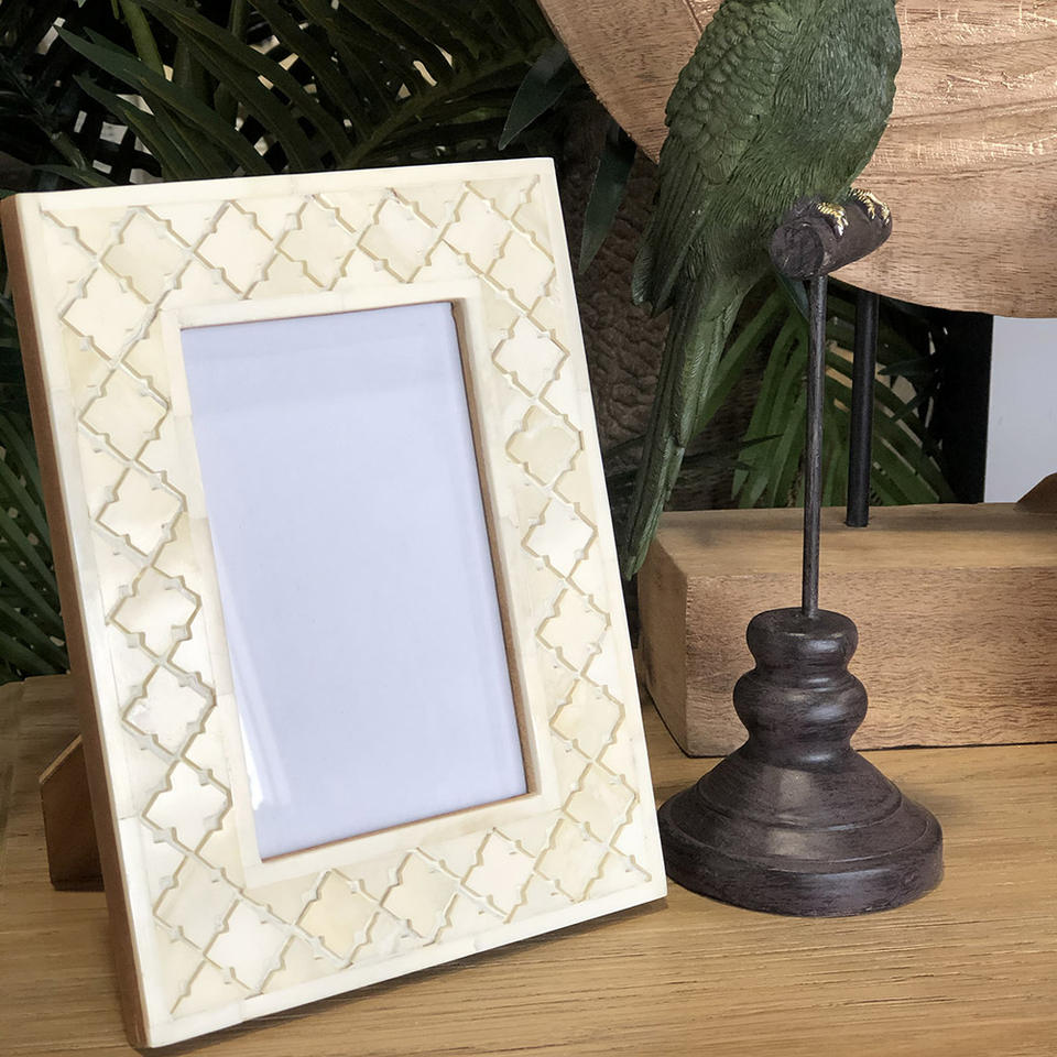 Bone Inlay Round Photo Frame Colored Bone Handicrafts square Shape Picture Frame Brown and White Bone Decorative Photo Frame