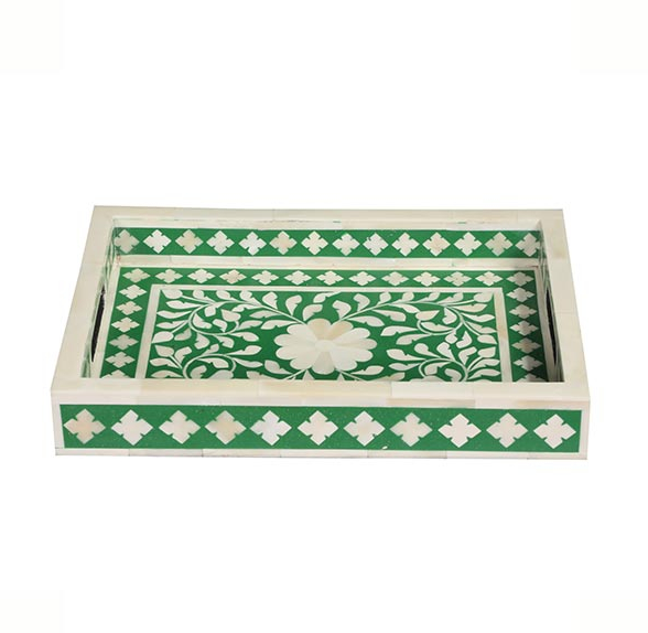 Bone Inlay Serving Tray Brass Handle Flower Pattern Design Round Chocolates Decorative Tray